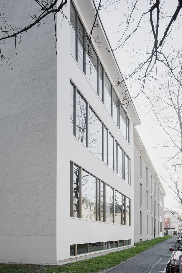 Der Zustand der Oberflächen der 1964 erbauten Schulanlage und die Vorgabe, die Schule nach den Anforderungen der Freiburger Energieleitlinie an städtische Gebäude energetisch zu sanieren, machten den Erhalt der ursprünglichen Oberflächen unmöglich.