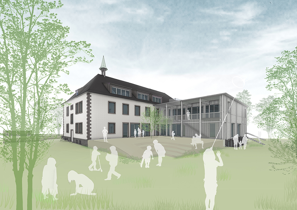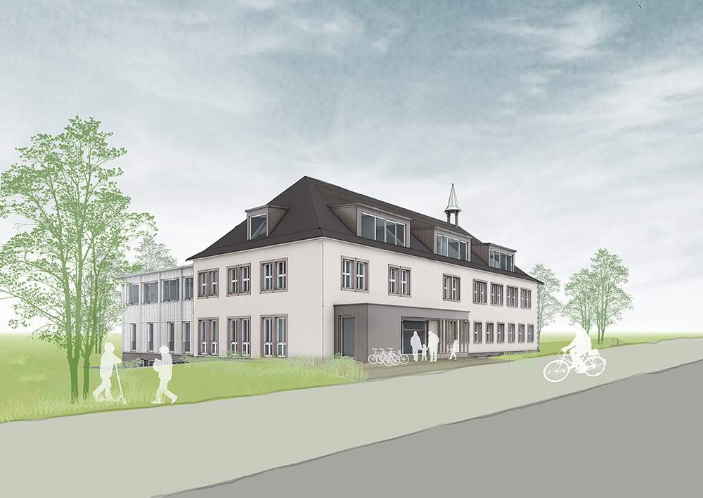 Das historische Gebäude wird dafür wieder in seine ursprüngliche Form und Länge gebracht, indem der Anbau aus der Nachkriegszeit (aufgrund teilweiser Zerstörung im 2. Weltkrieg) ersetzt wird durch eine nahezu baugleiche Rekonstruktion. Ein weiterer Anbau wird am rückwärtigen Teil in Holzbauweise gefertigt.