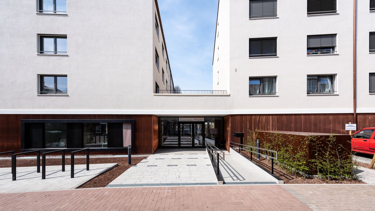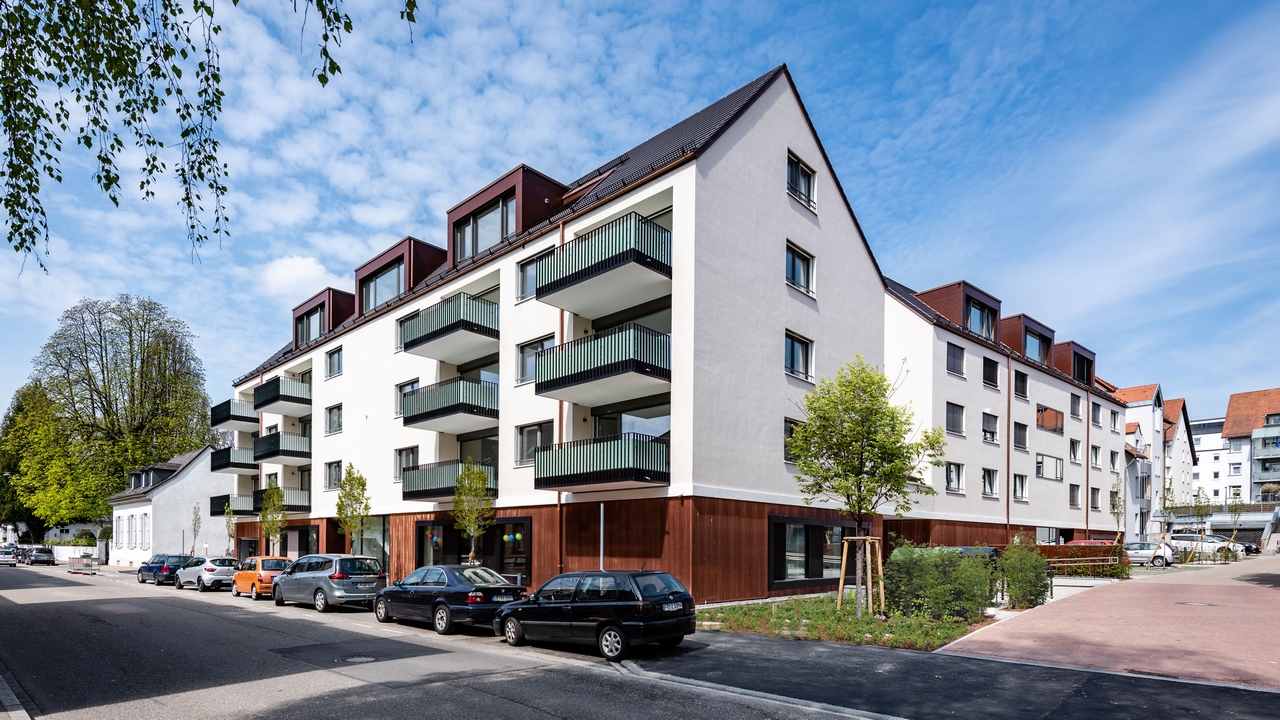 Das Team realisierte rund 30 Wohneinheiten mit Schwerpunkt auf Familienwohnen. Die notwendigen Stellplätze befinden sich in der Tiefgarage unter den Gebäuden und dem Hof.